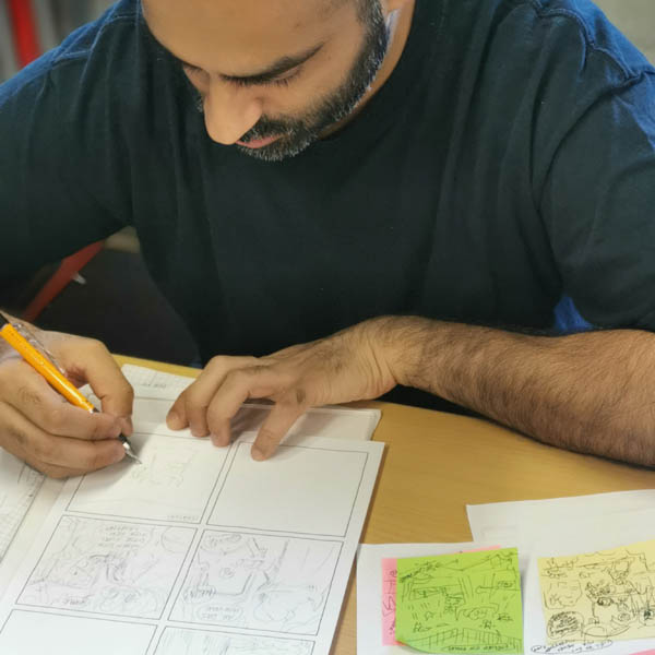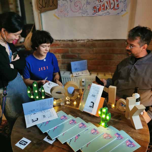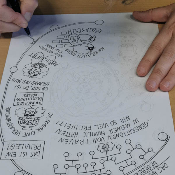 Des exercices pour mieux comprendre les mécanismes de la BD ; réalisation d’une histoire courte par participant.e pour le fanzine franco-allemand SCHICK#18, travail intensif ; échange intercultutel