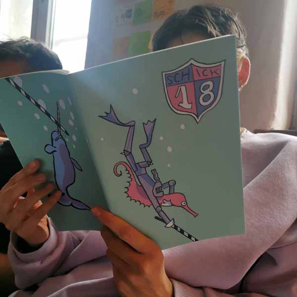 Übungen zum besseren Verständnis von Comics; Umsetzung einer eigenen Kurzgeschichte, die im dt-frz Comic-Heft SCHICK#18 veröffentlicht wird; intensives Arbeiten; interkultureller Austausch